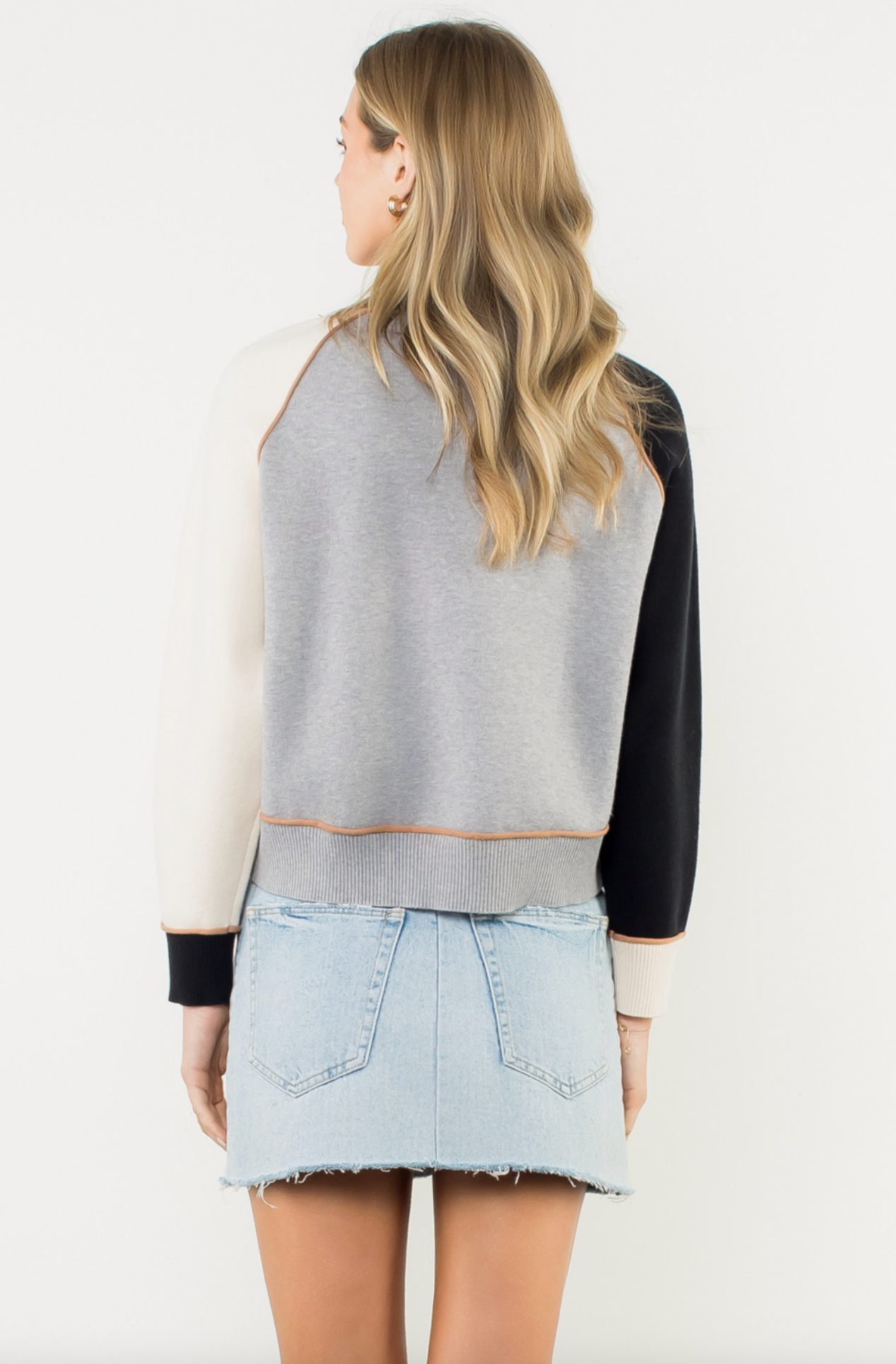 COLORBLOCK RAGLAN SLEEVE SWEATER - GRAY