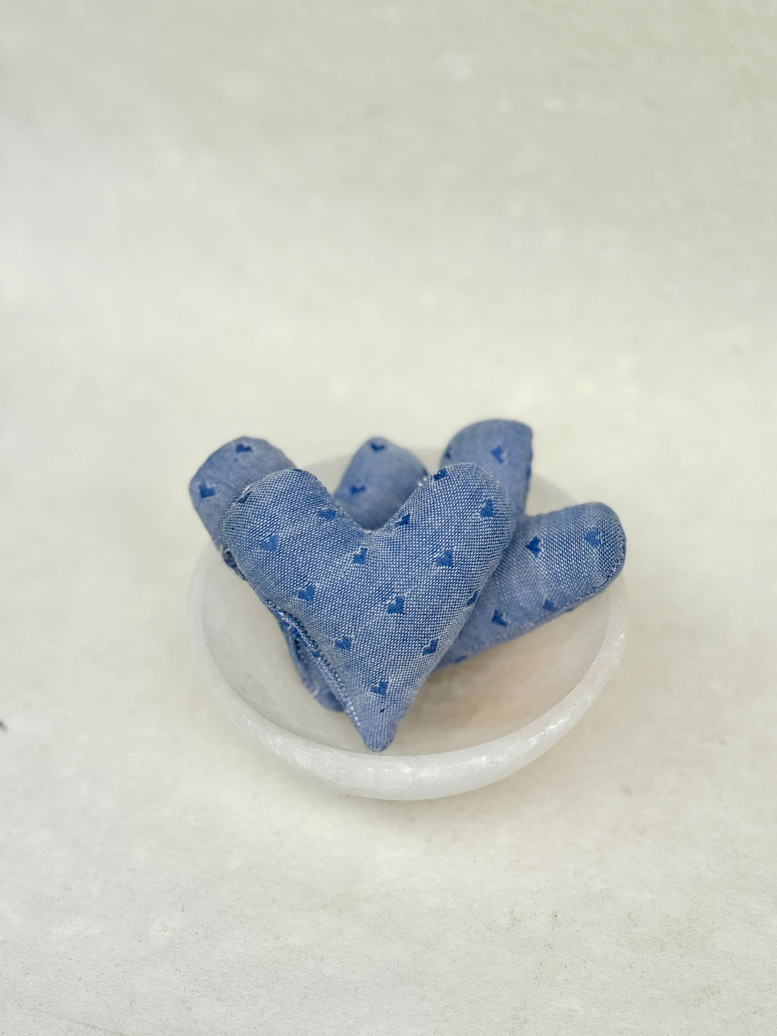 Mini Lavender Heart Sachets make for a wonderful table display in a basket, glass jar, wooden bowl etc. Lavender filled Blue heart print Cotton woven fabric.
