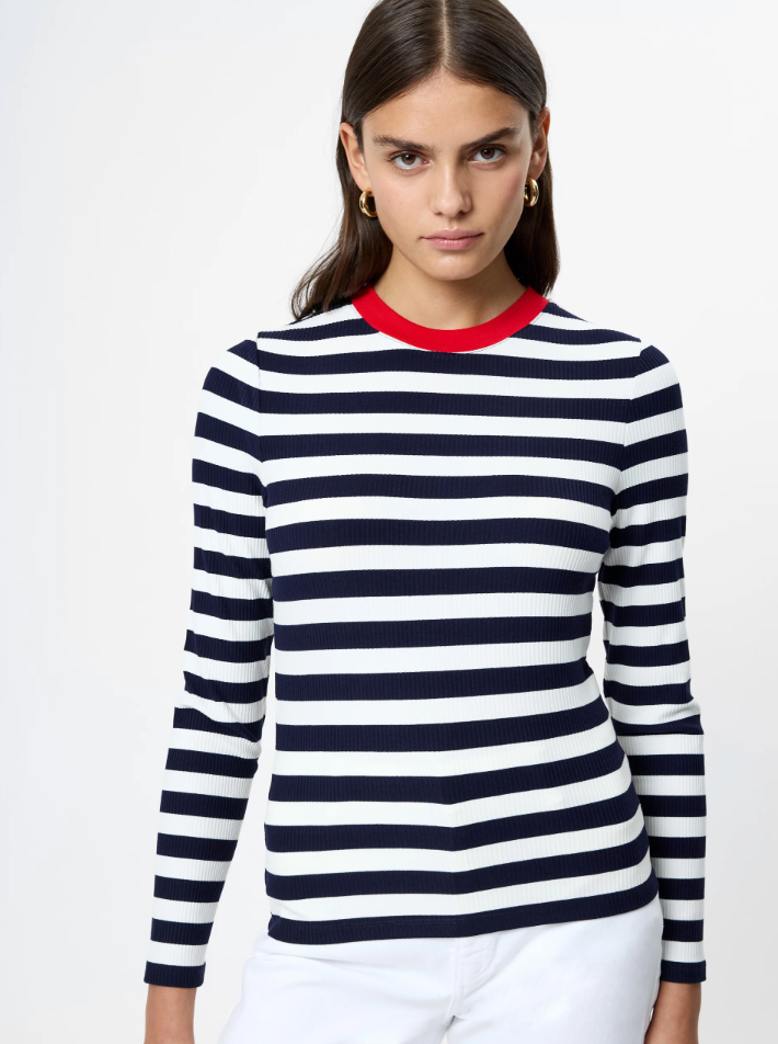 ESMAE RIB KNIT CREWNECK TOP - MARINE/WHITE