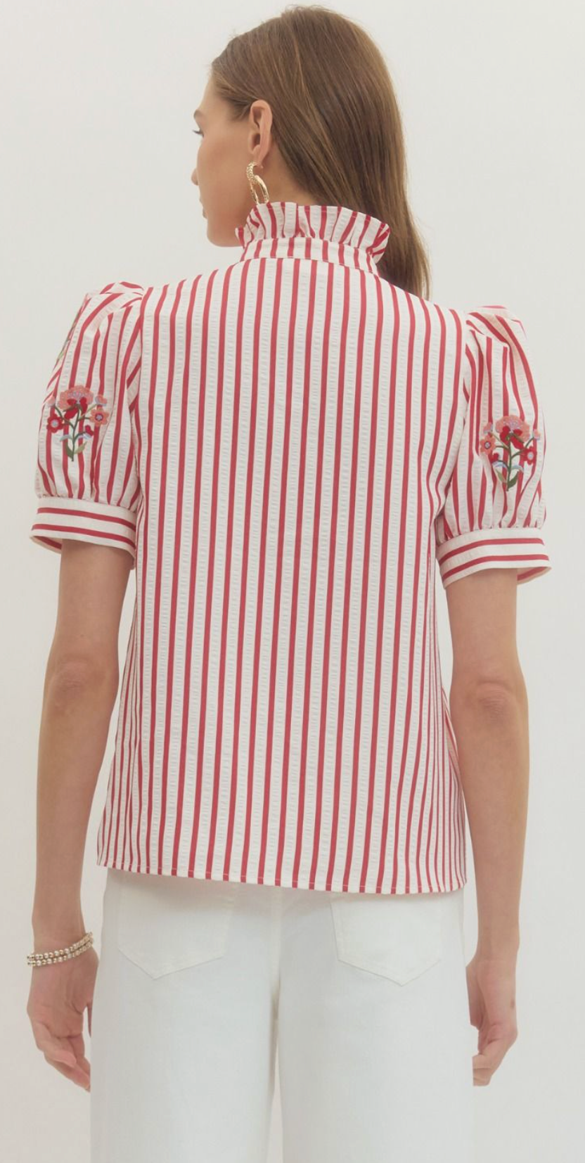 STRIPED PUFF SHORT SLEEVE TOP - PINK