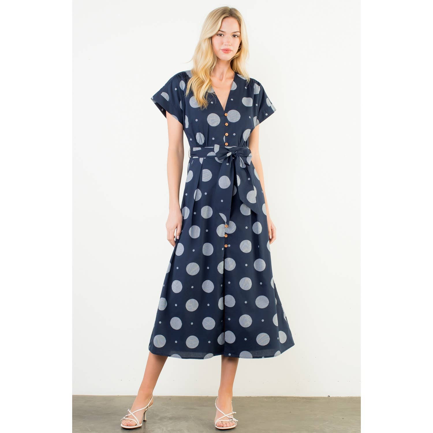 SHORT SLEEVE POLKA DOT DRESS - NAVY