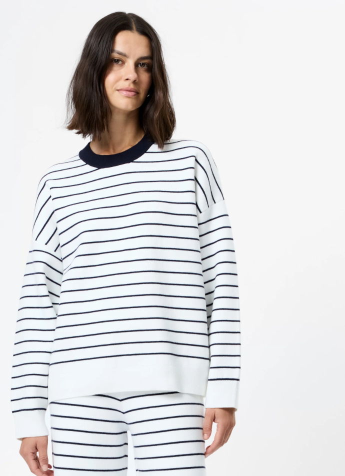 The Marley Knit Striped Crew Neck is an easy essential designed for polished comfort. Made from a soft, structured knit with timeless stripes, it features a relaxed fit and classic crew neckline.