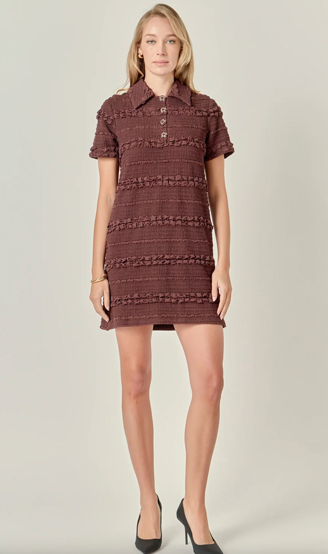 NANCY TEXTURED MINI DRESS - CHOCOLATE BROWN