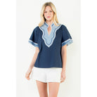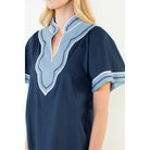 Wide Sleeve Contrast Trim V-Neck Top