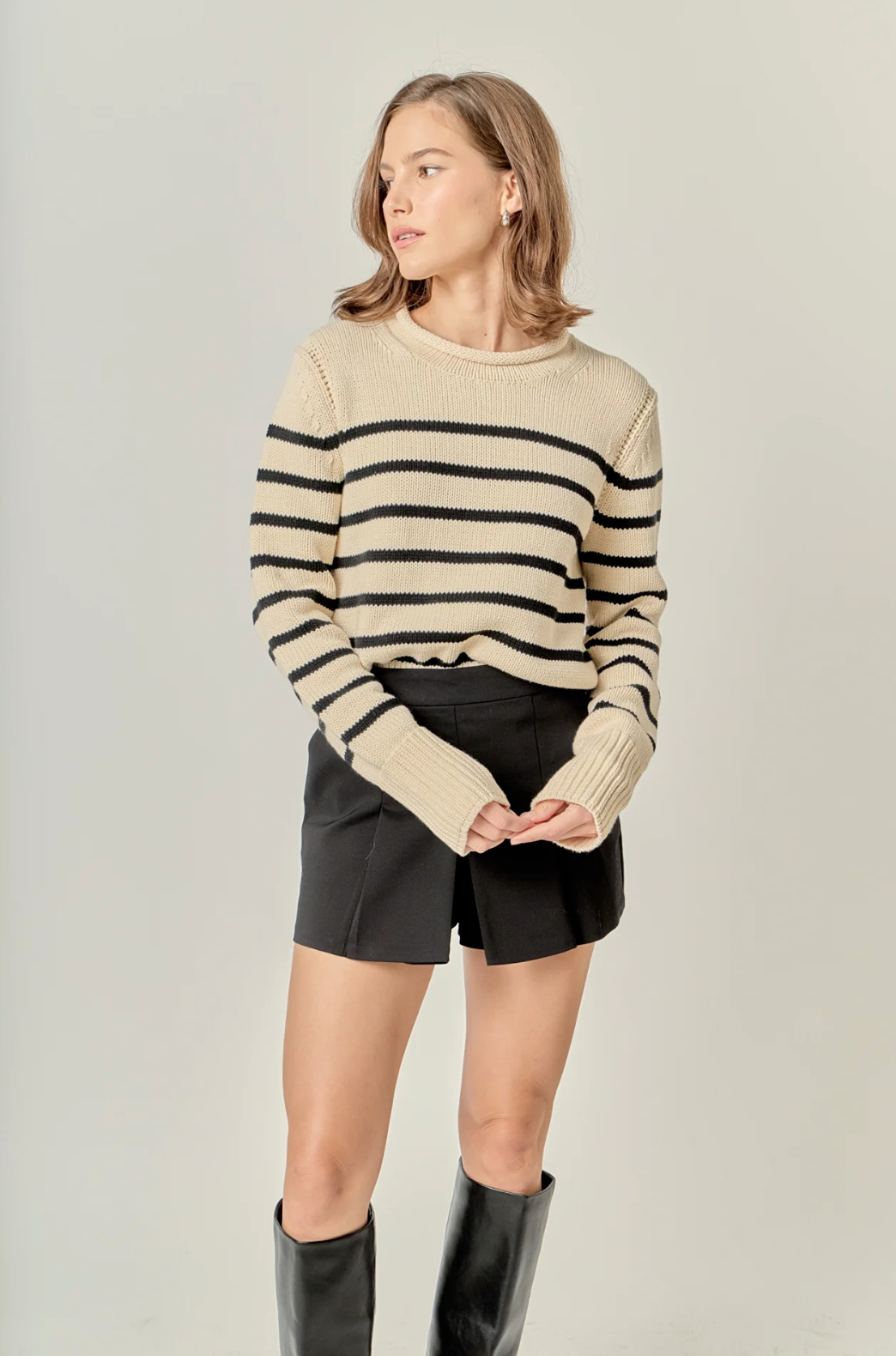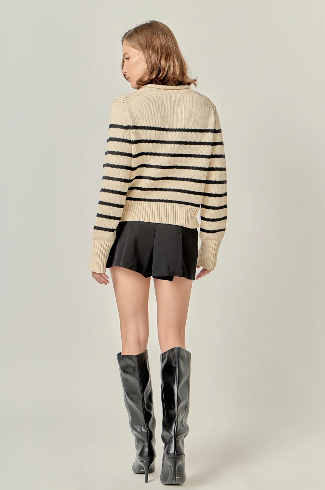 STRIPE ROLLNECK SWEATER - BLACK/CREAM