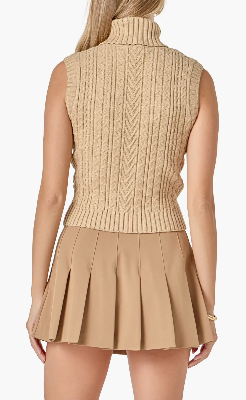 CABLE MOCK NECK KNIT TOP - BEIGE