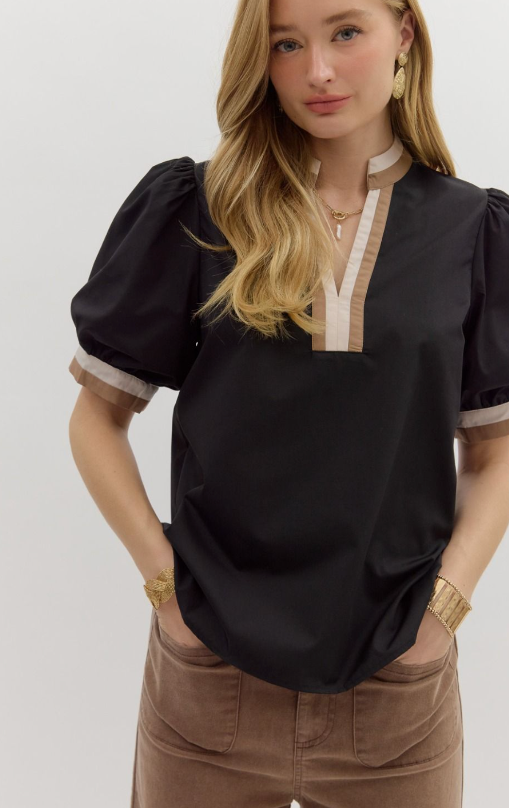 FAUX LEATHER PIPING DETAIL JACKET - BLACK/TAUPE