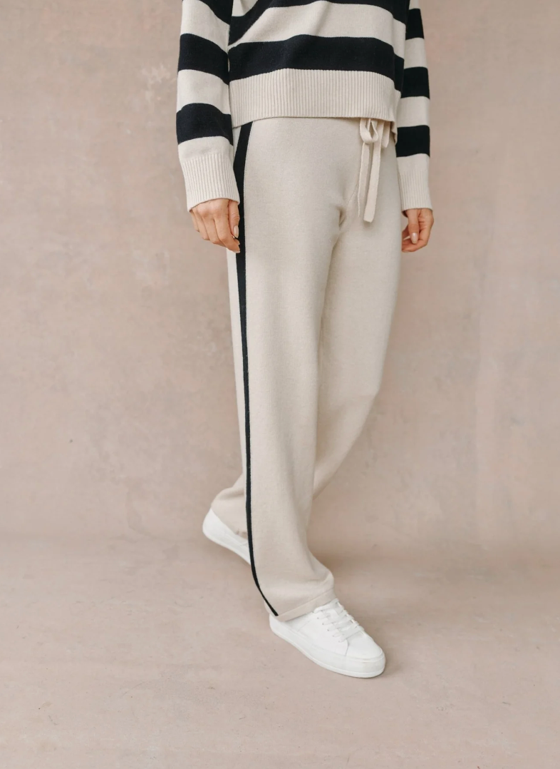 BELLA DAHL SIDE STRIPE STRAIGHT PANT - OAT & BLACK
