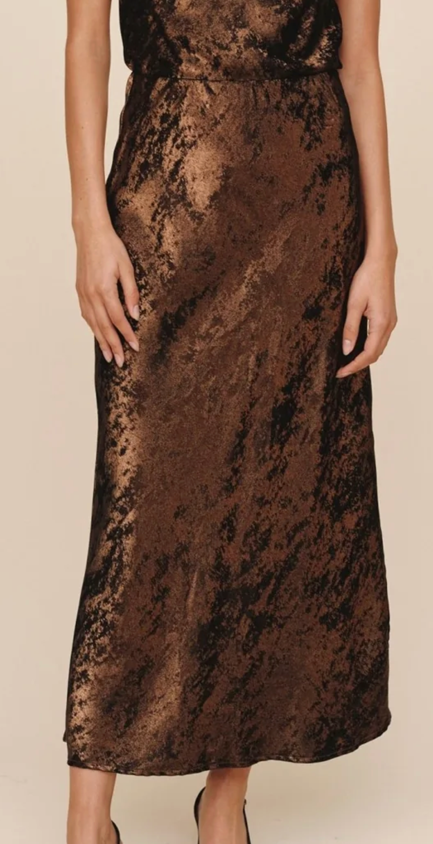 BELLA DAHL SIDE SLIT BIAS MAXI SKIRT - BRONZE SHIMMER