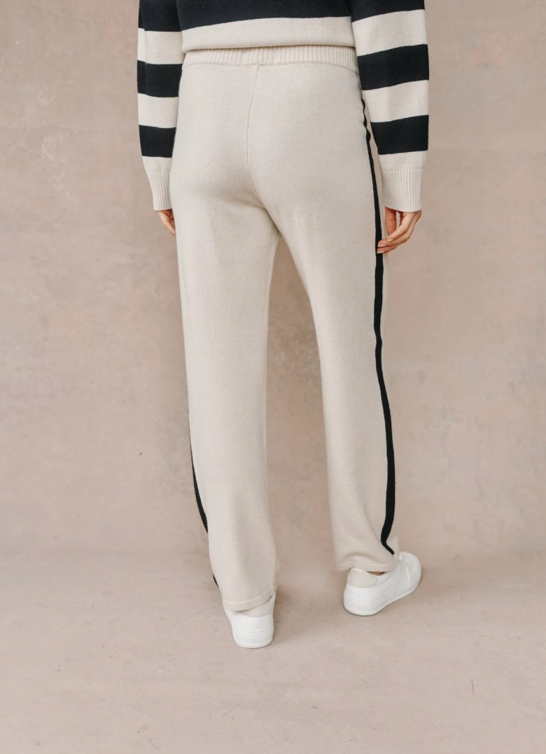 Soft and lightweight, the Side Stripe Straight Leg Pant in Oat & Black delivers a relaxed fit with a polished edge.