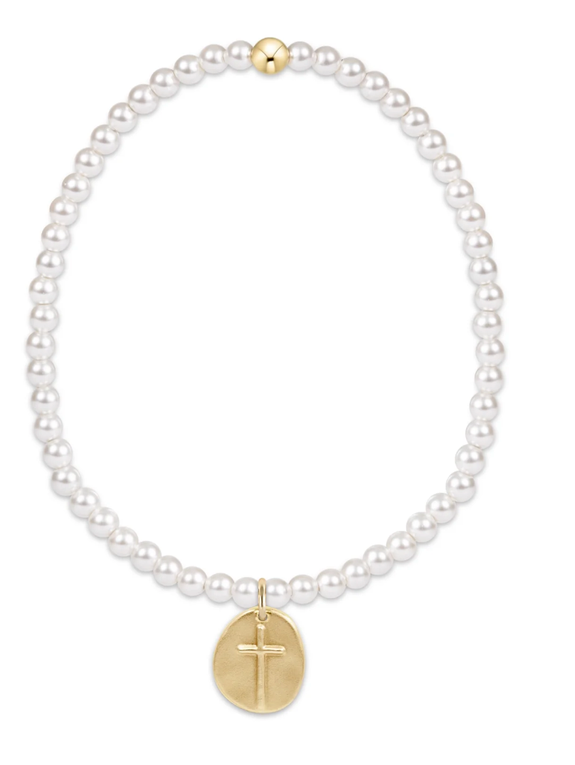 Classic pearl 3mm bead bracelet with inspire small gold charm.