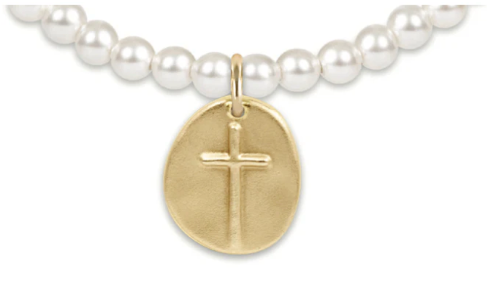 E NEWTON CLASSIC PEARL 4MM BEAD BRACELET WITH INSPIRE GOLD CHARM