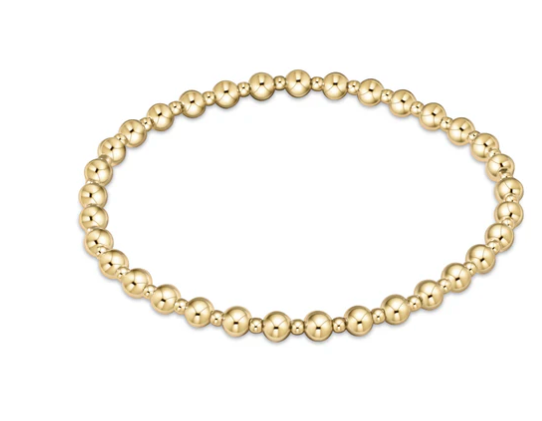 Introducing our new pattern, grateful. This bracelet is a classic gold beaded bracelet with alternating bead sizes. The larger bead size is a 4mm, 5mm or 6mm and the smaller bead size is a 2mm.