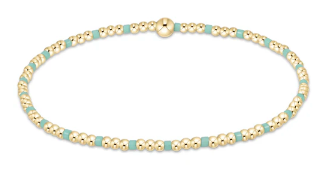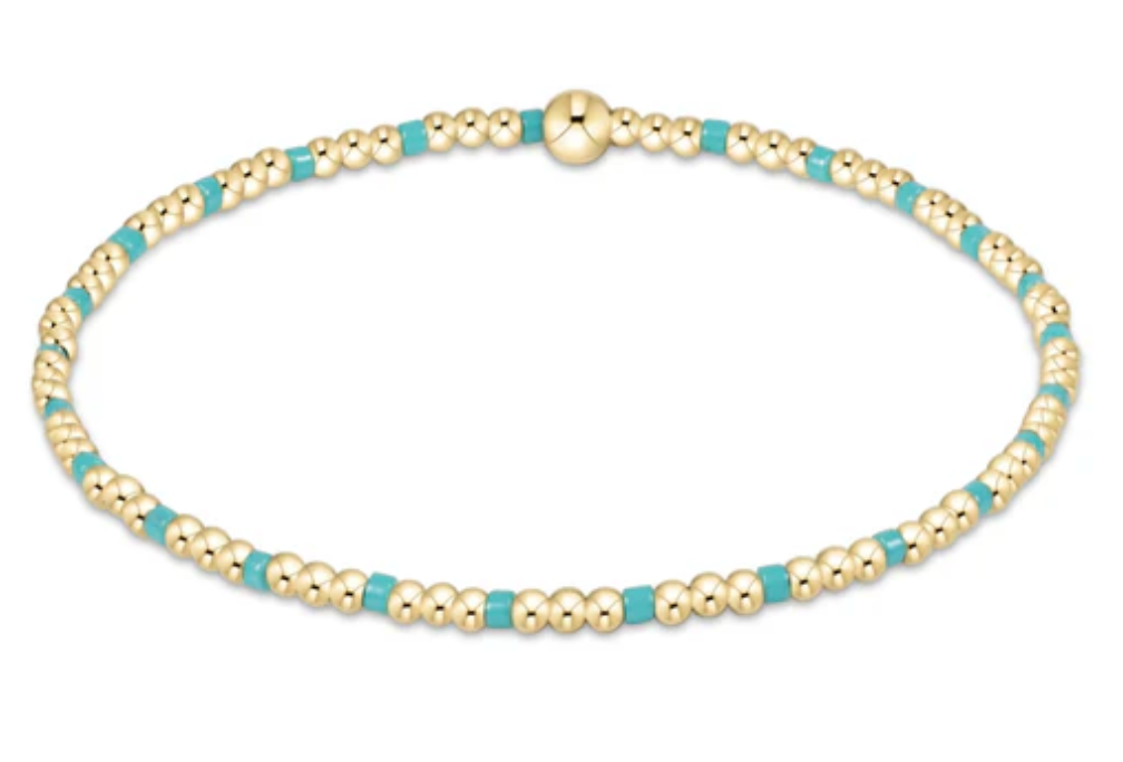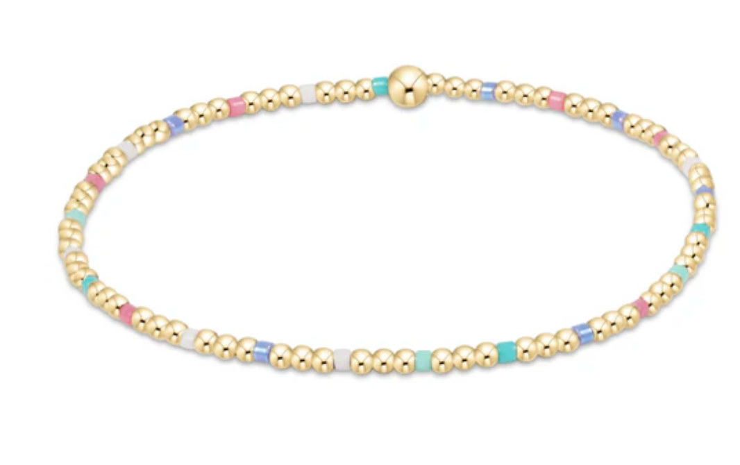 Hand beaded on high performance elastic for a slight stretch to easily roll on and off your wrist