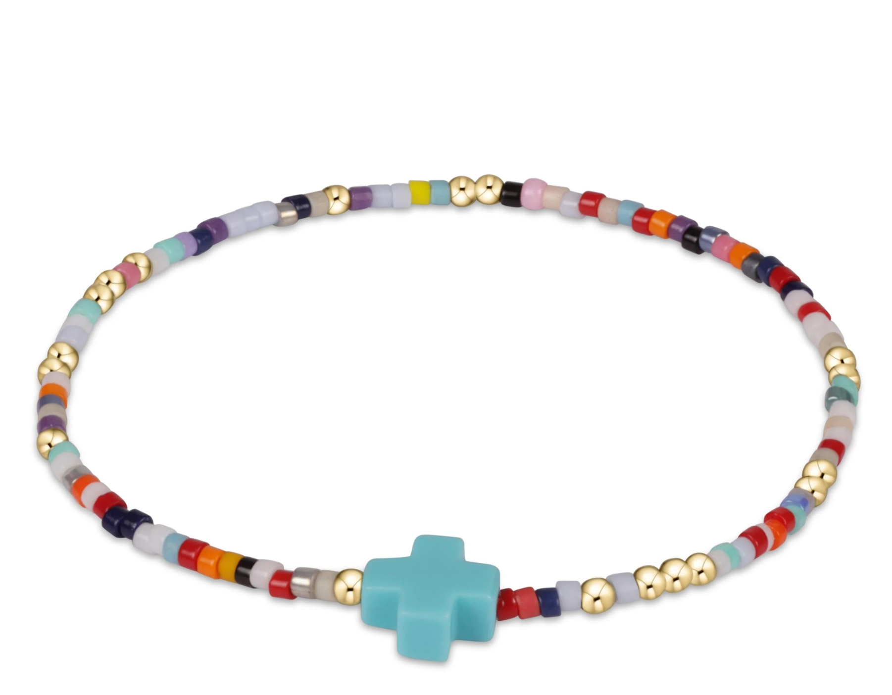 - Made with 14kt gold-filled beads and various colors of seed beads with our turquoise signature cross