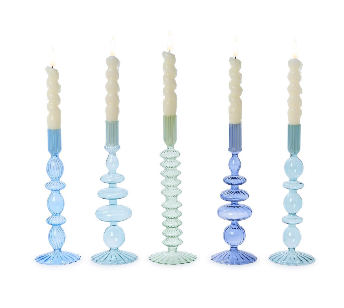 HAND-BLOWN GLASS CANDLESTICKS - SHADES OF BLUE