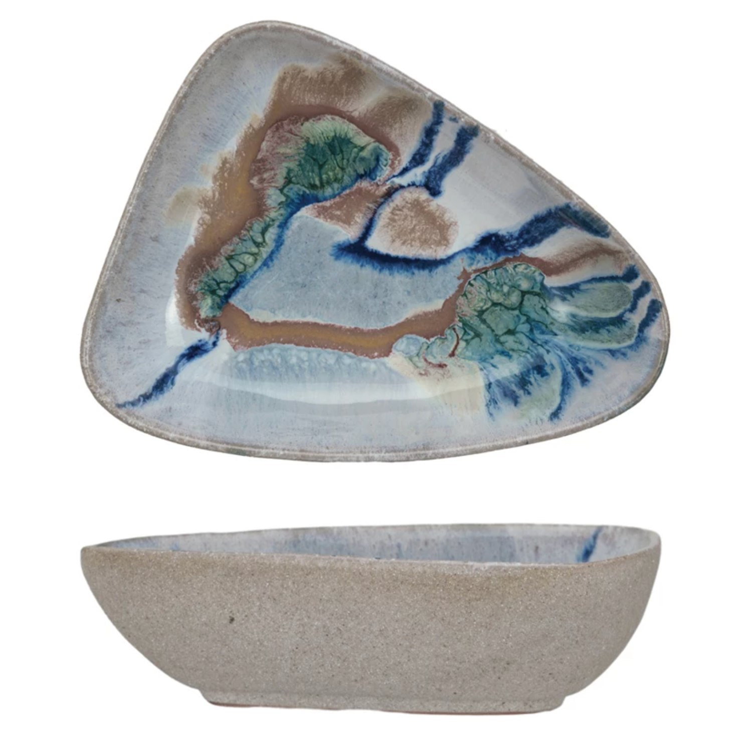 STONEWARE TRIANGULAR BOWL - REACTIVE GLAZE