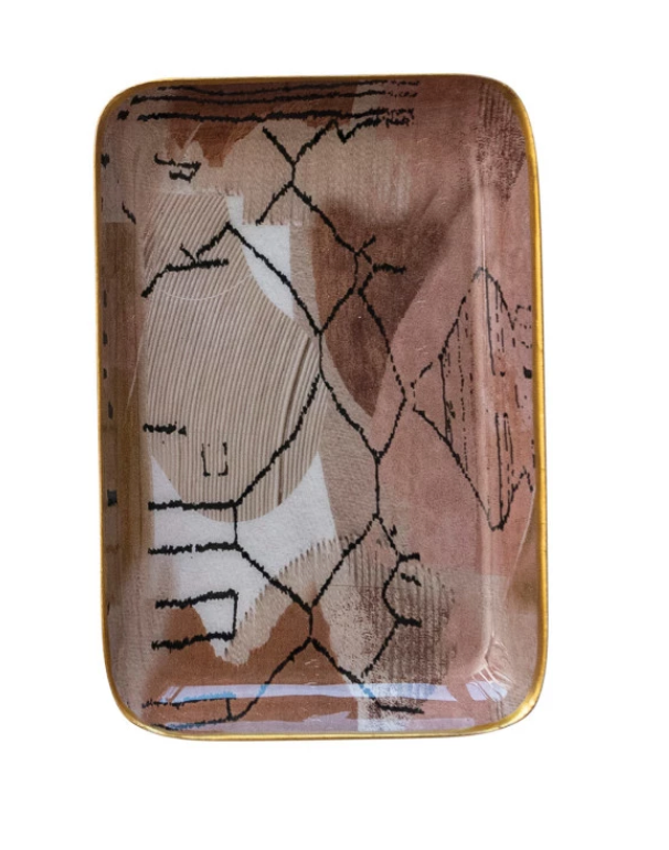ENAMELED METAL TRAY WITH PATTERN - 3 STYLES