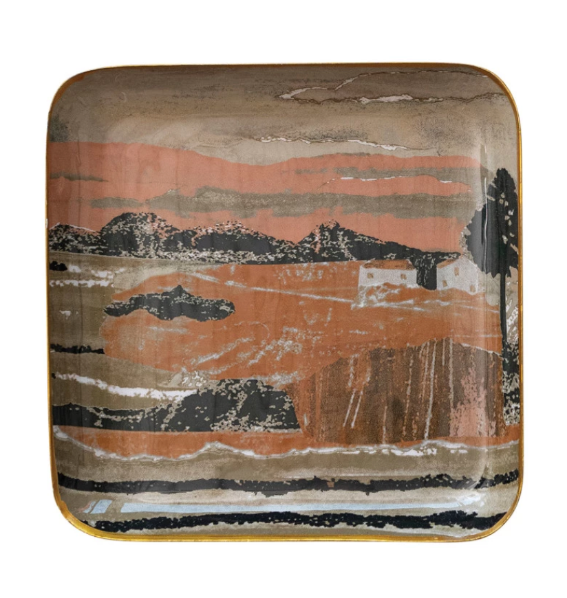 ENAMELED METAL TRAY WITH LANDSCAPE IMAGE - 2 SIZES