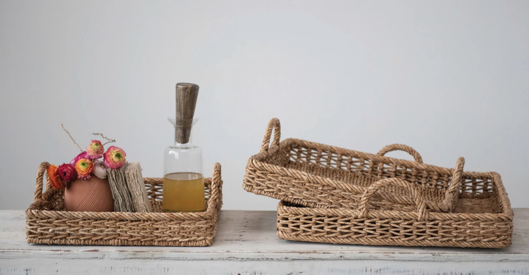 DECORATIVE HAND-WOVEN TRAYS WITH HANDLES - 3 SIZES