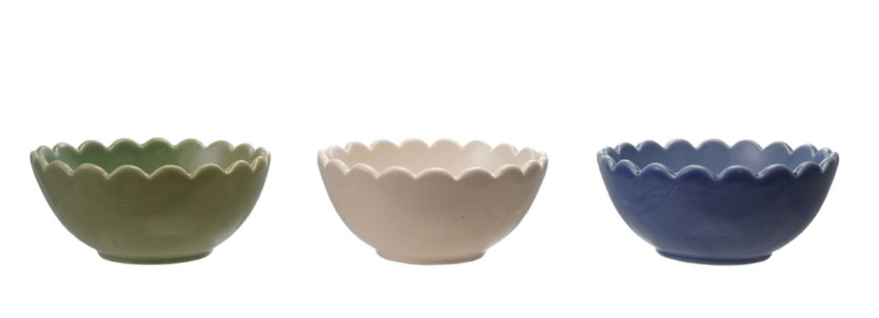 STONEWARE SCALLOPED BOWL - 3 COLORS