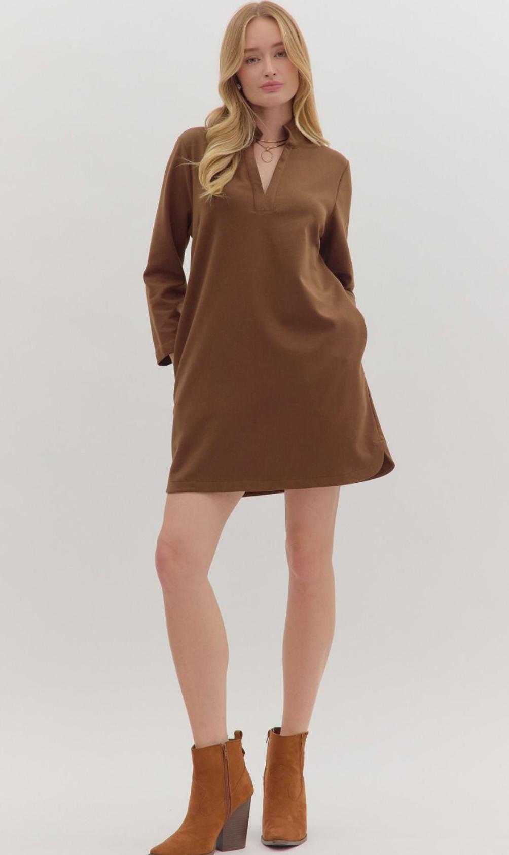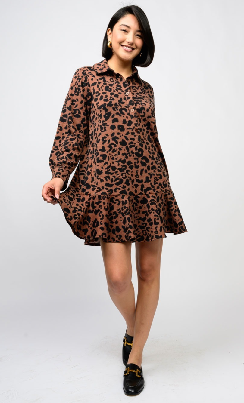 COLLARED MINI DRESS - BROWN