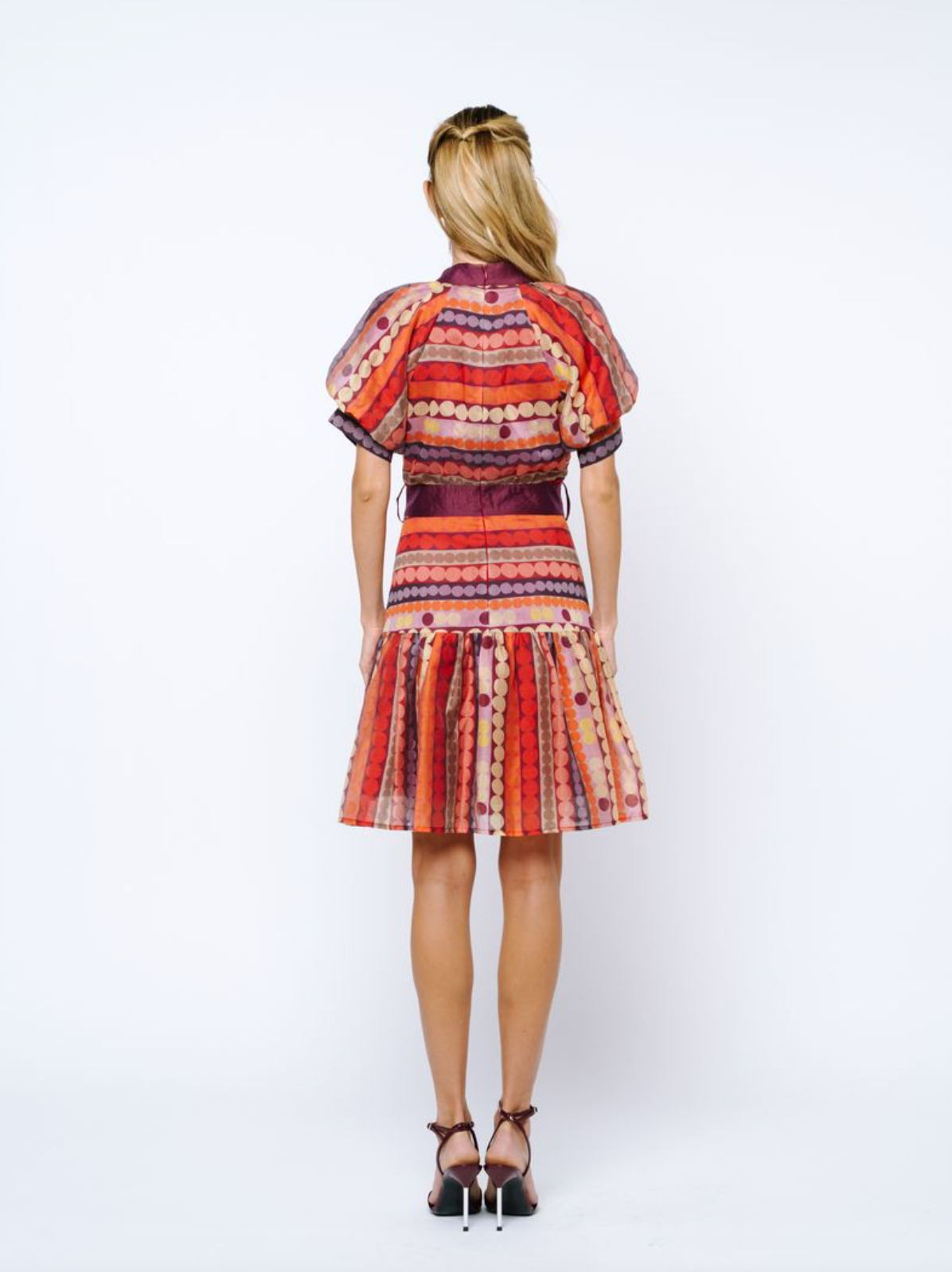 FLORAL PRINT MINI DRESS WITH RUFFLE DETAIL - MERLOT