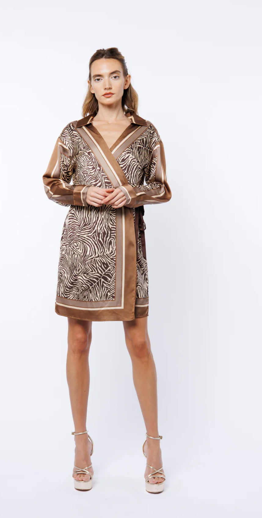 CLEMMIE DROP SHOULDER WRAP MINI DRESS - BROWN