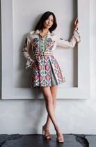 PRINTED MINI SHIRT DRESS WITH PLEATS - CREAM