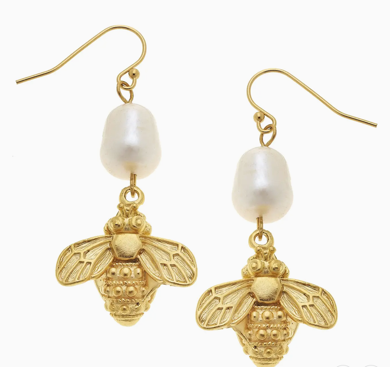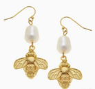Gold Bee and Genuine Freshwater Pearl Earrings