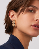 These voluminous earrings are sculptural, cool and bold. The dramatic shape echoes the design style of the '60s and '70s, notably Afra and Tobia Scarpa's Soriana sofa and Ueli Berger's "Non-Stop" sofa. The Non-Stop Earrings are paired with the Lobe Lifters for added support. Finished in high-polish gold.