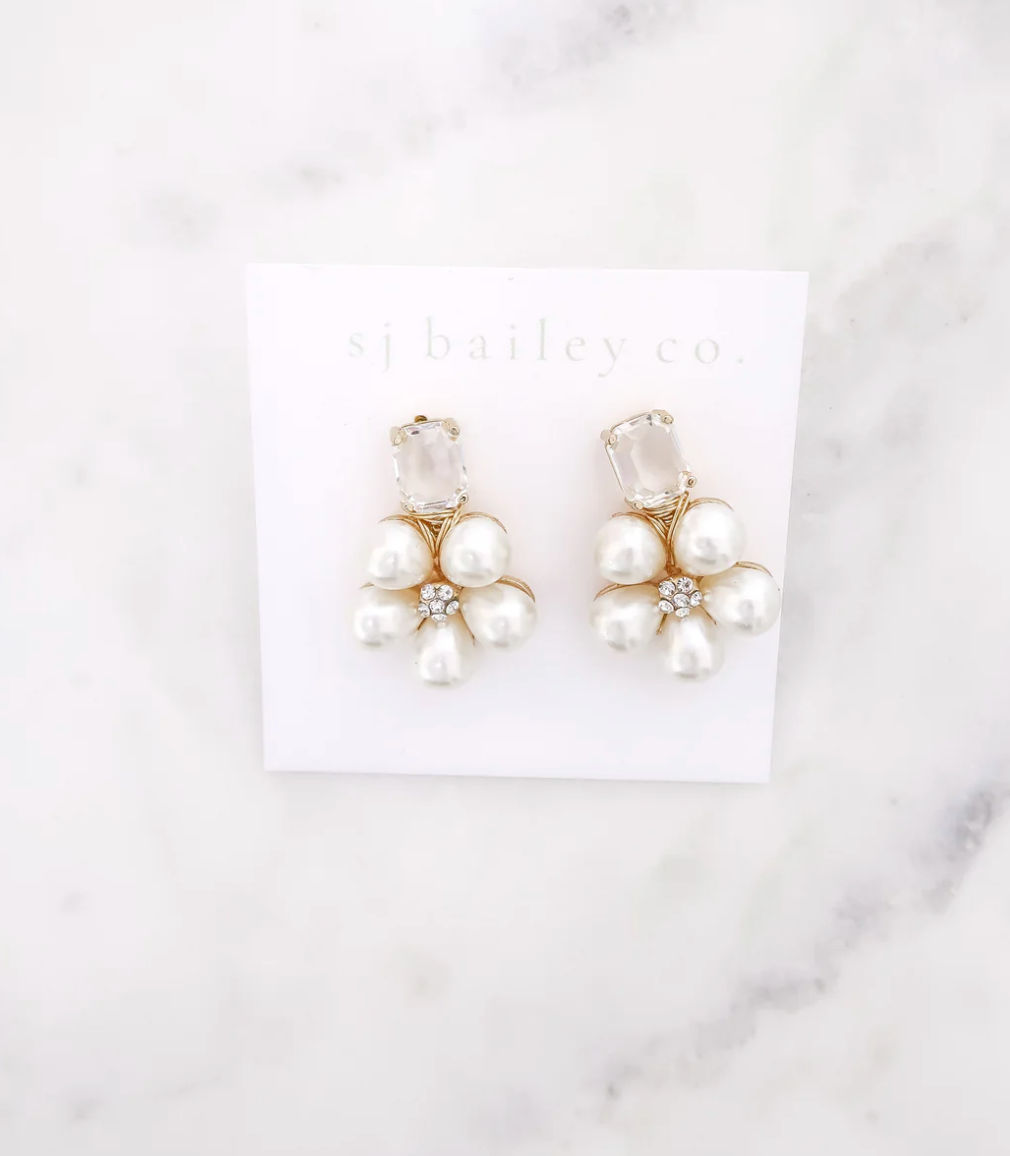 The Fallon Earrings feature a delicate pearly crystal flower design, offering a timeless, elegant touch. Perfect for adding sophistication to your wedding day or any special occasion, these earrings combine the refined beauty of pearls with the sparkle of crystals. With their versatile style and intricate details, the Fallon Earrings are an essential accessory for both formal and everyday wear.