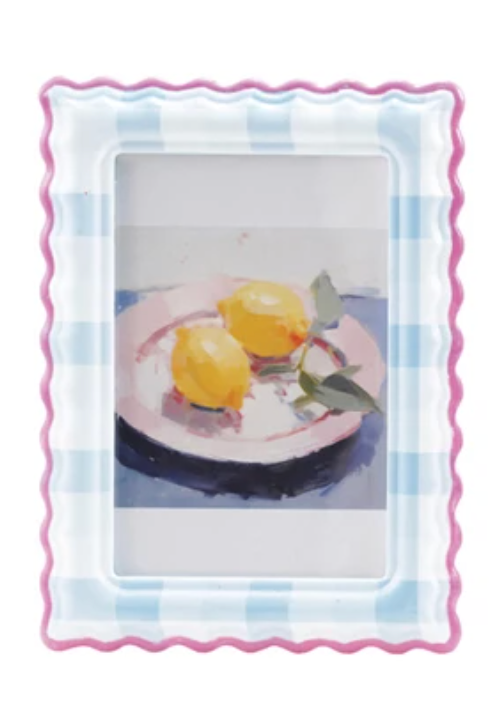 5-1/2"W x 7-1/2"H MDF Framed Scalloped Photo Frame w/ Plaid Pattern, 2 Colors