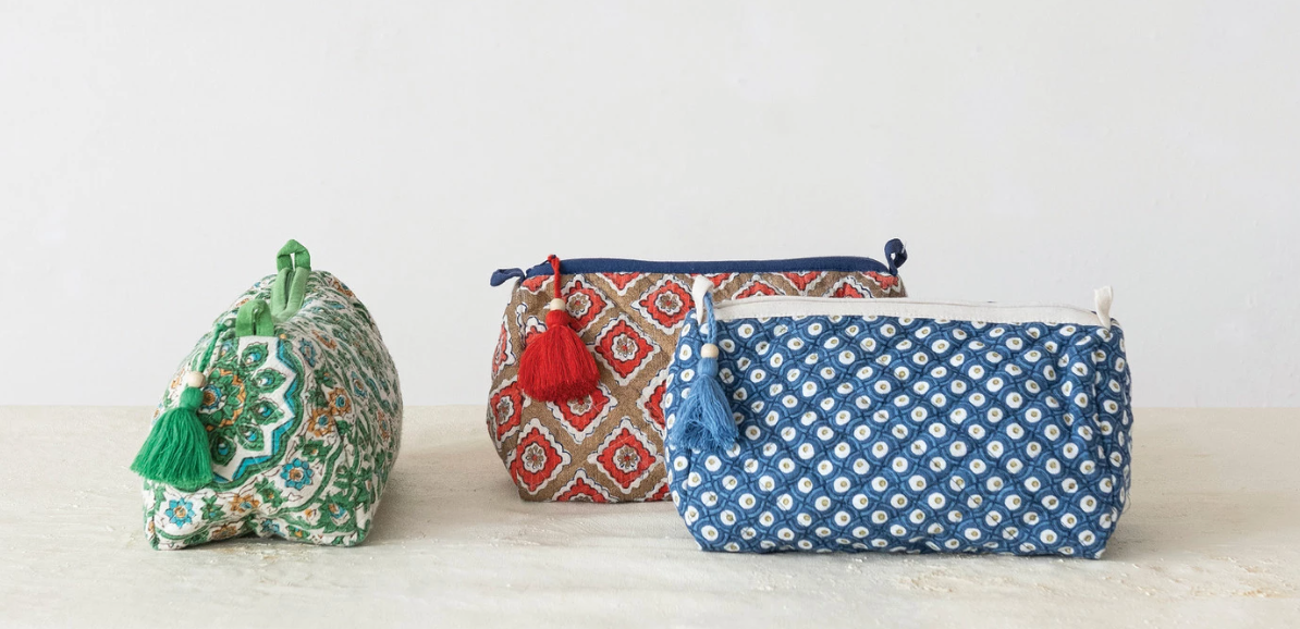 QUILTED COTTON ZIP POUCH - 3 STYLES