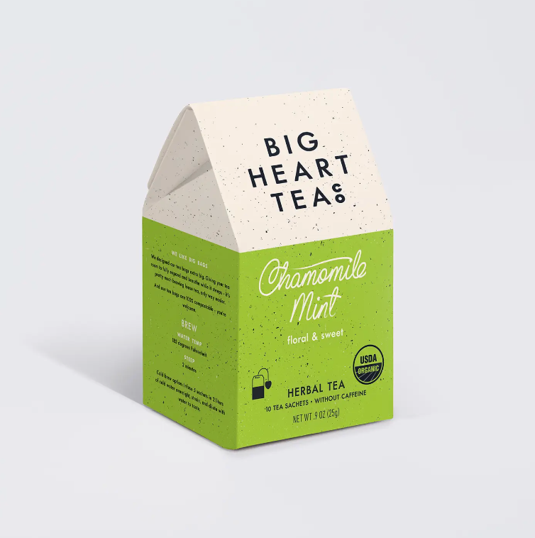 A calming blend of chamomile and herbs. Chamomile Mint is a naturally sweet and minty tea, simply blended with 3 ingredients: organic chamomile, organic spearmint and organic lemongrass. We designed our bags extra big to give the tea room to fully expand and breathe while it steeps.