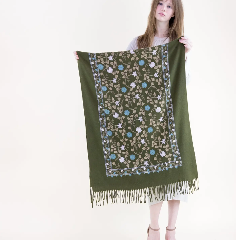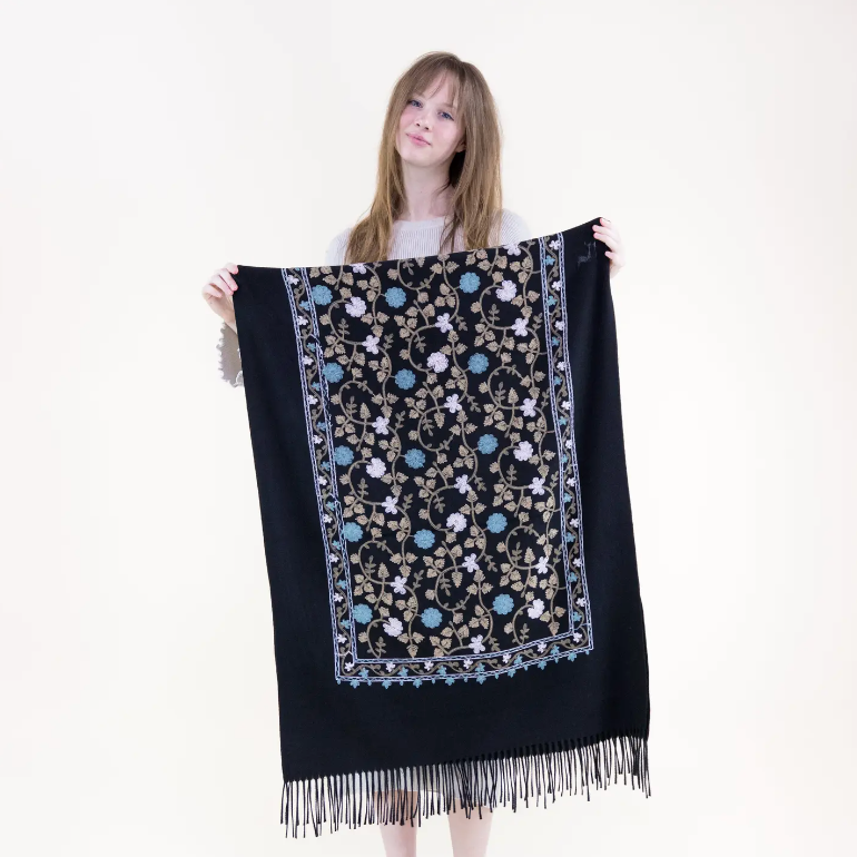 EMBROIDERED FLORAL VINES SCARF - 2 COLORS