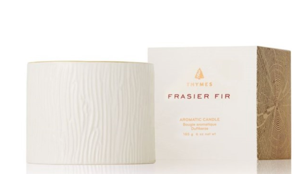 This aromatic candle features stunning wintery white wood grain ceramic, trimmed with 24-karat gold rim, filling the room with the iconic mountain fresh fragrance.