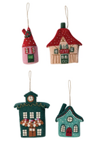 7-1/4"H Handmade Wool Felt North Pole Village Building Ornament w/ Embroidery & Beads, Multi Color, 4 Styles