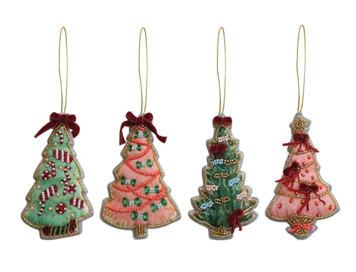 HANDMADE BEADED FABIC TREE ORNAMENT - 4 STYLES