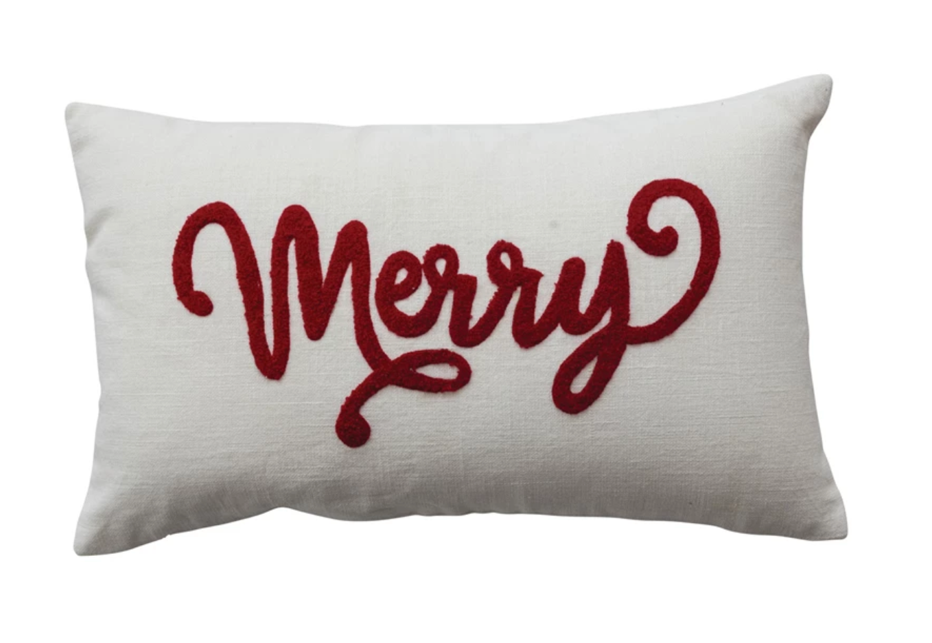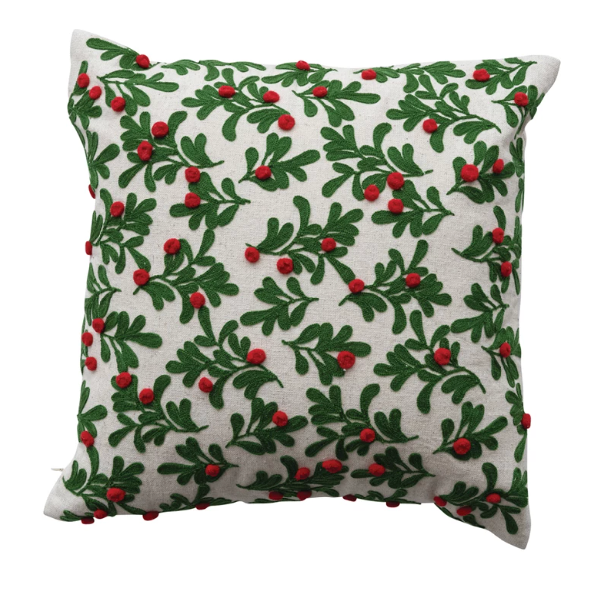 16" SQUARE PILLOW WITH MISTLETOE PATTERN