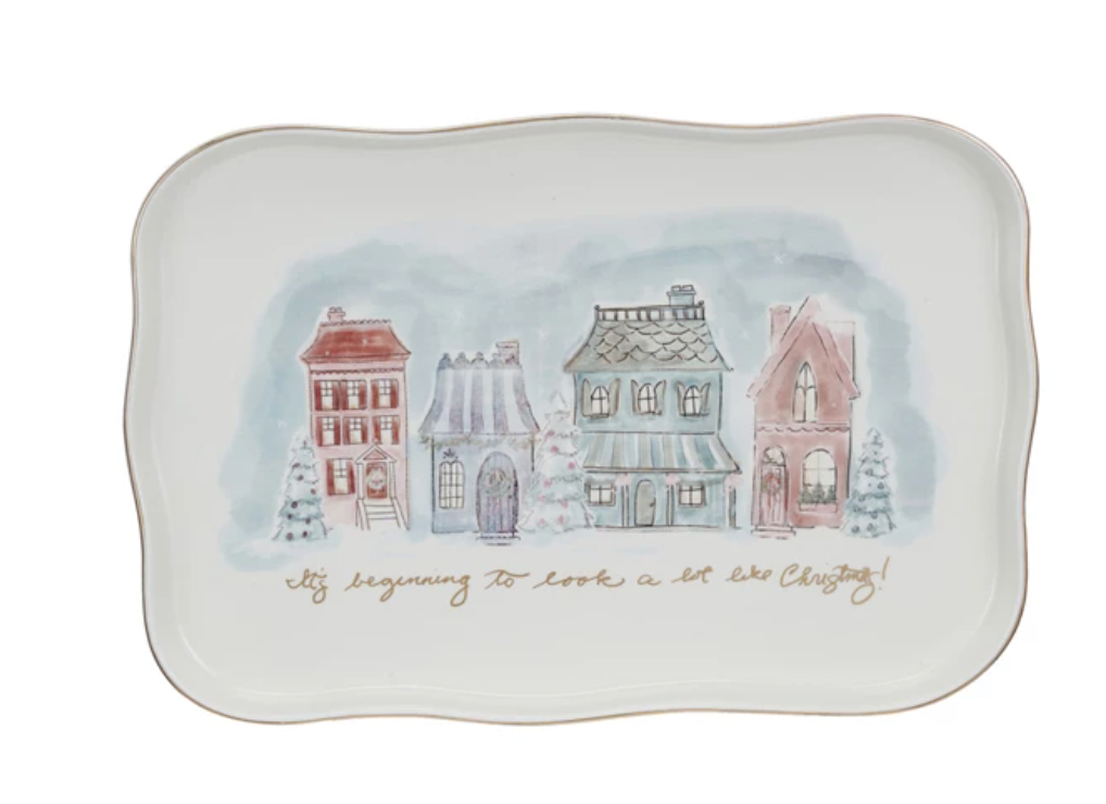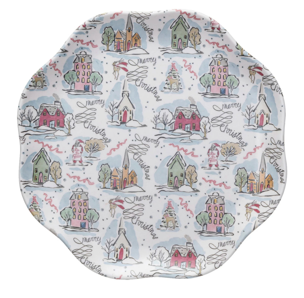 STONEWARE PLATTER WITH CHRISTMAS VILLAGE SCENE - IN STORE PICK UP ONLY!