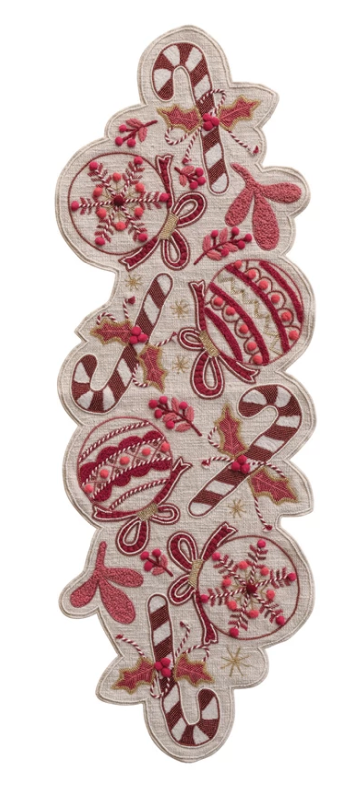 HAND-EMBROIDERED SLUB TABLE RUNNER - RED/WHITE
