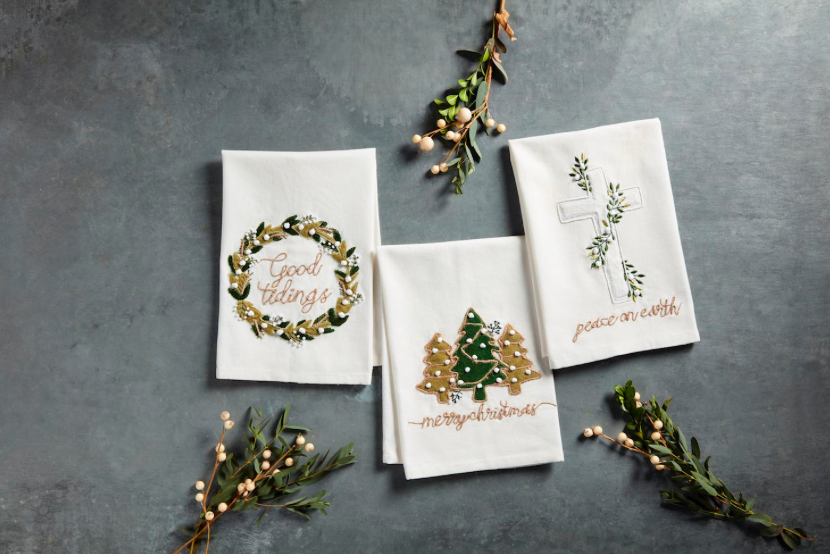 HOLIDAY EMBROIDERY DANGLE TOWELS - 3 STYLES
