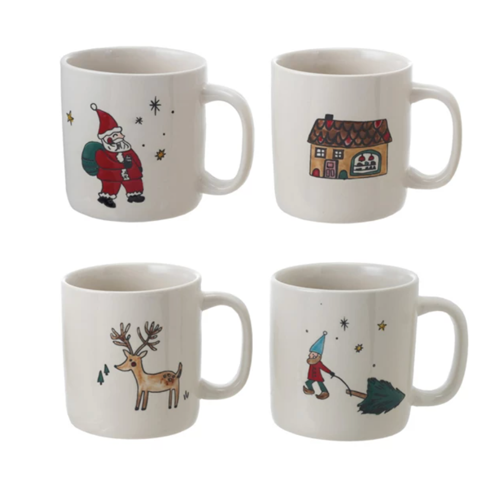 3-1/2" Round x 5"H 16 oz. Stoneware Mug w/ Wax Relief Image, Multi Color, 4 Styles