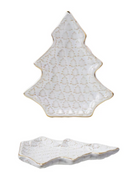 6"L x 5"W Stoneware Tree Shaped Plate w/ Trees & Gold Electroplating, Reactive Glaze, White (Each One Will Vary)