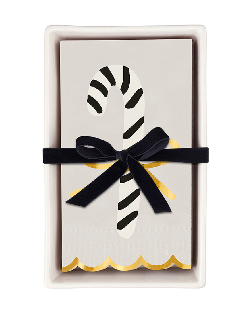 CERAMIC NAPKIN TRAY WITH NAPKINS-CANDY CANE