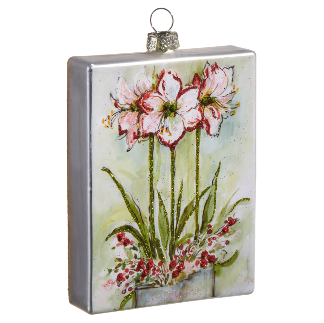 5" Watercolor Holiday Amaryllis Rectangle Ornament