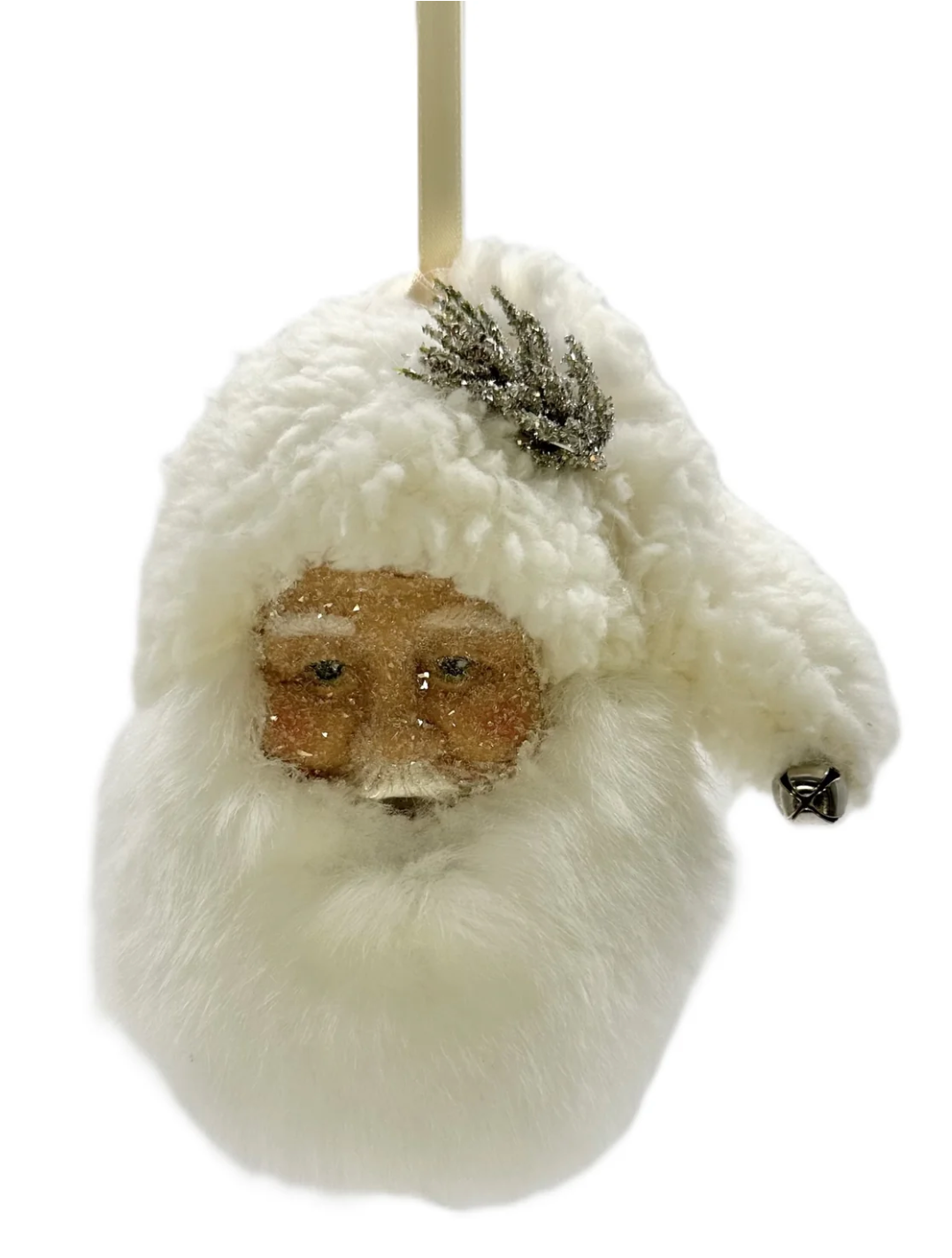Meet Kris Santa, the most seriously delightful little peek-a-boo Santa you'll ever hang on your tree! With his white eyebrows and frosty pink cheeks nestled in a snowy white Sherpa faux fur hat and beard, he looks as though he’s just popped through a snowball to wish you a merry Christmas. A tiny silver jingle bell at the tip of his hat and silvery pine needle accents add a touch of festive sparkle, while a satin ribbon makes him ready to deck the halls—or your tree. Santa’s charm is pure holiday magic, one joyful jingle at a time!
