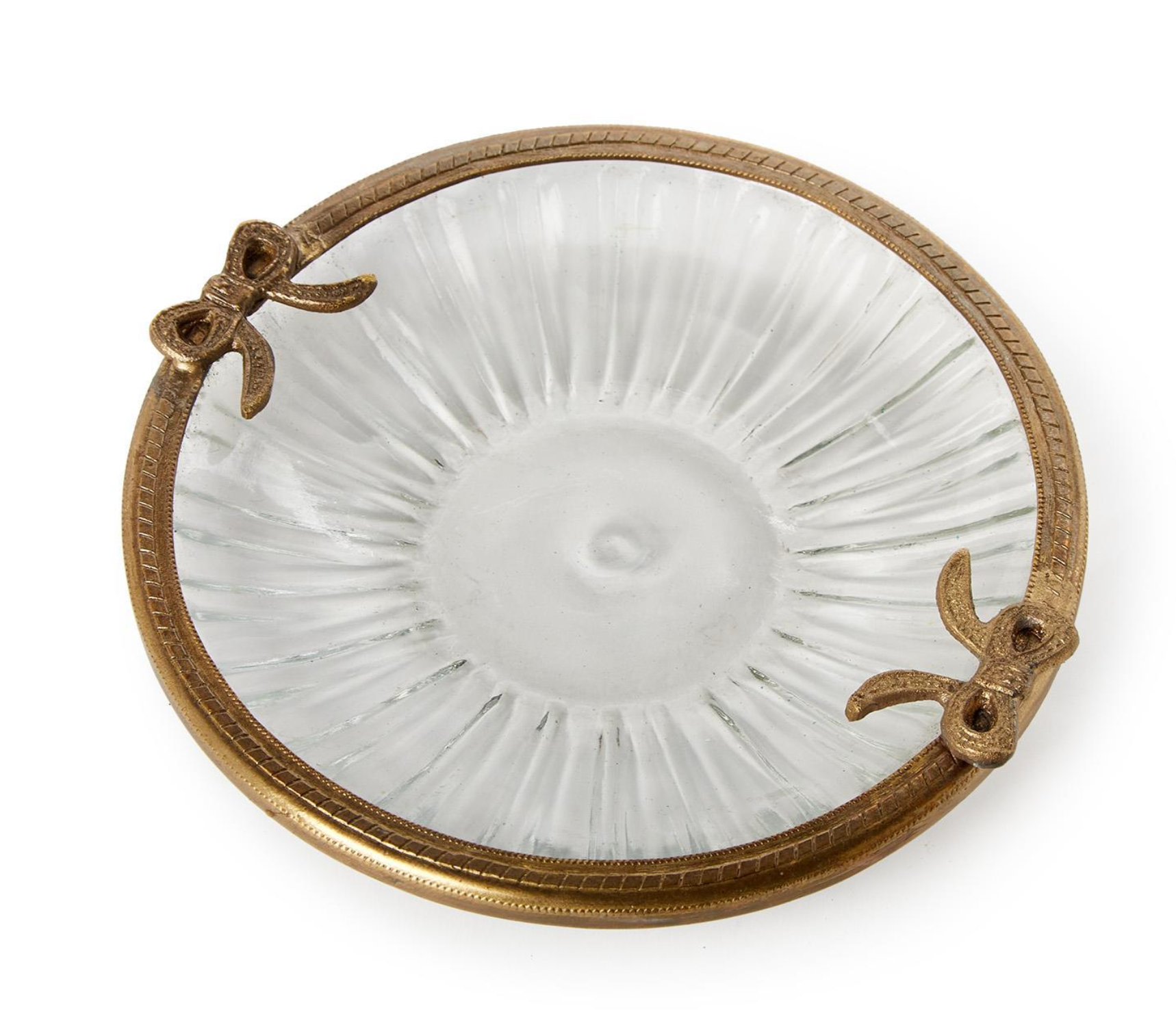 ANTIQUE GOLD AND GLASS TRINKET DISH WITH BOWS