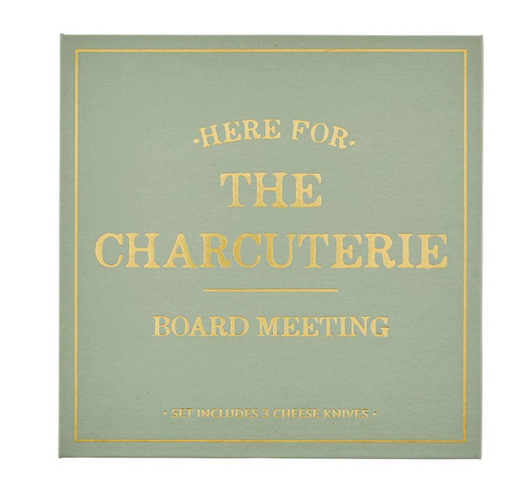 Set of 3 charcuterie cheese knives includes cheese fork, bell knife and chisel knife. Comes in a beautiful acacia handle with stainless steal blades. Set of 3 cheese knifes come in colored book box with gold foil text. Inside the book boxes lists what each knife is and how to use your new knives.